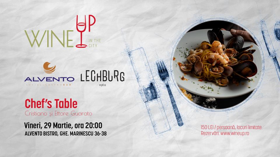 Deja un eveniment consacrat organizat de Alvento Bistro, Chef’s Table, vă dă ocazia să experimentați live prepararea unui întreg meniu italian cu ingediente specifice, în timp ce partenerii de la crama Lechburg vă vor încânta simțurile cu vinurile potrivite.