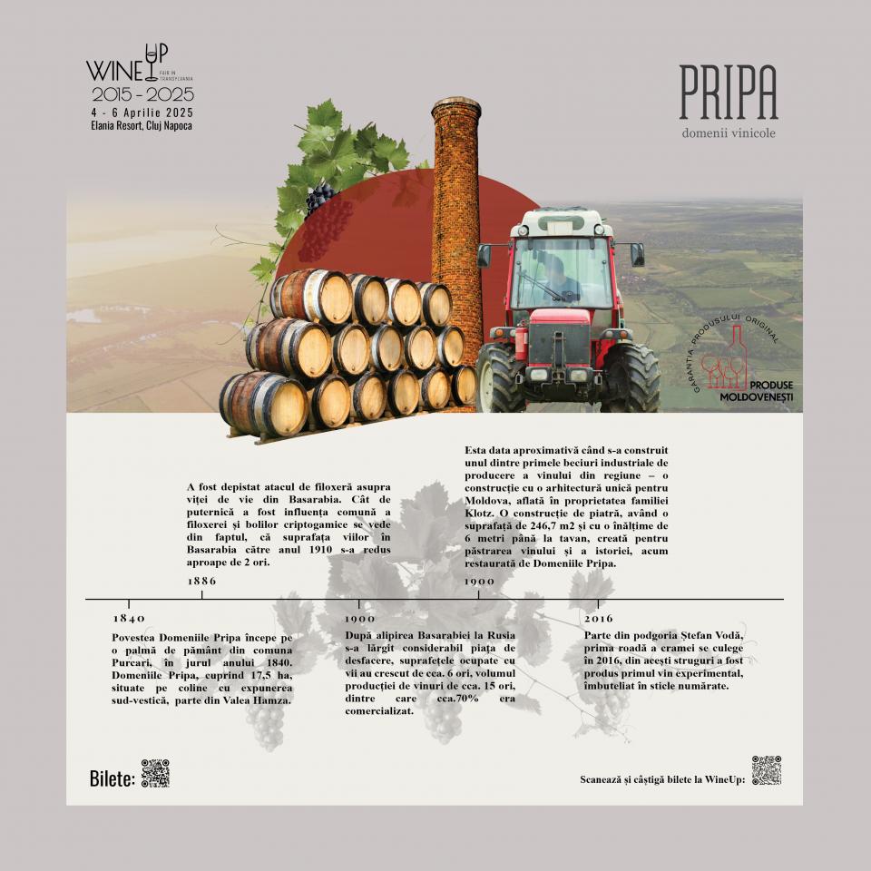Povestea Domeniile Pripa începe pe o palmă de pământ din comuna Purcari, în jurul anului 1840. Domeniile Pripa, cuprind 17,5 ha, situate pe coline cu expunerea sud-vestică, parte din Valea Hamza.