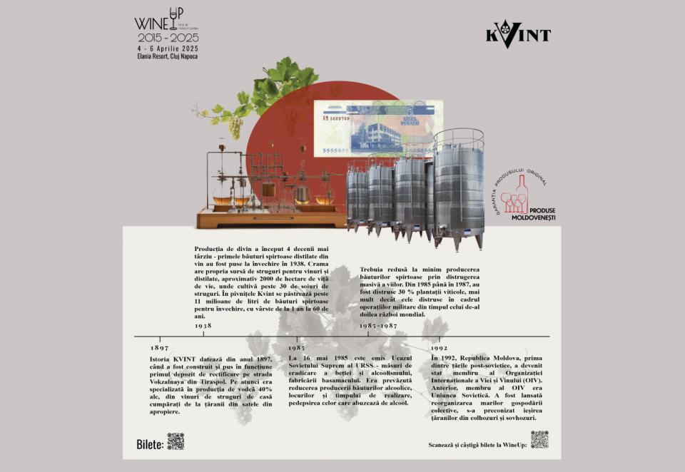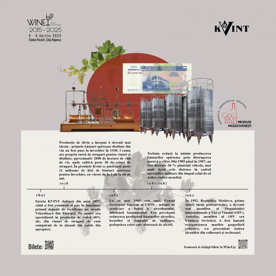 Istoria KVINT datează din anul 1897, când a fost construit și pus în funcțiune primul depozit de rectificare pe strada Vokzalnaya din Tiraspol. Pe atunci era specializată în producția de vodcă 40% alc, din vinuri de struguri de casă cumpărați de la țăranii din satele din apropiere.